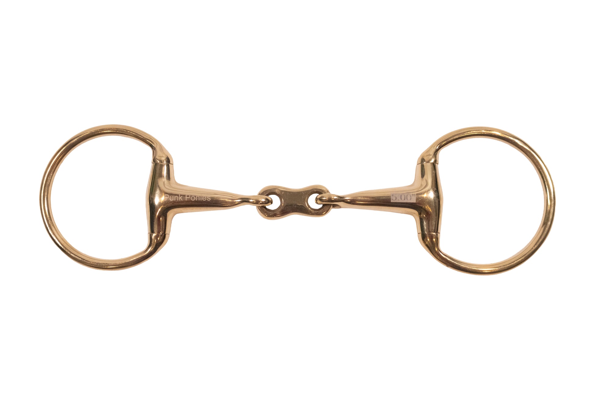 Gold/Brass coloured eggbutt french link bit. These bits are made of stainless steel with electro-plating.