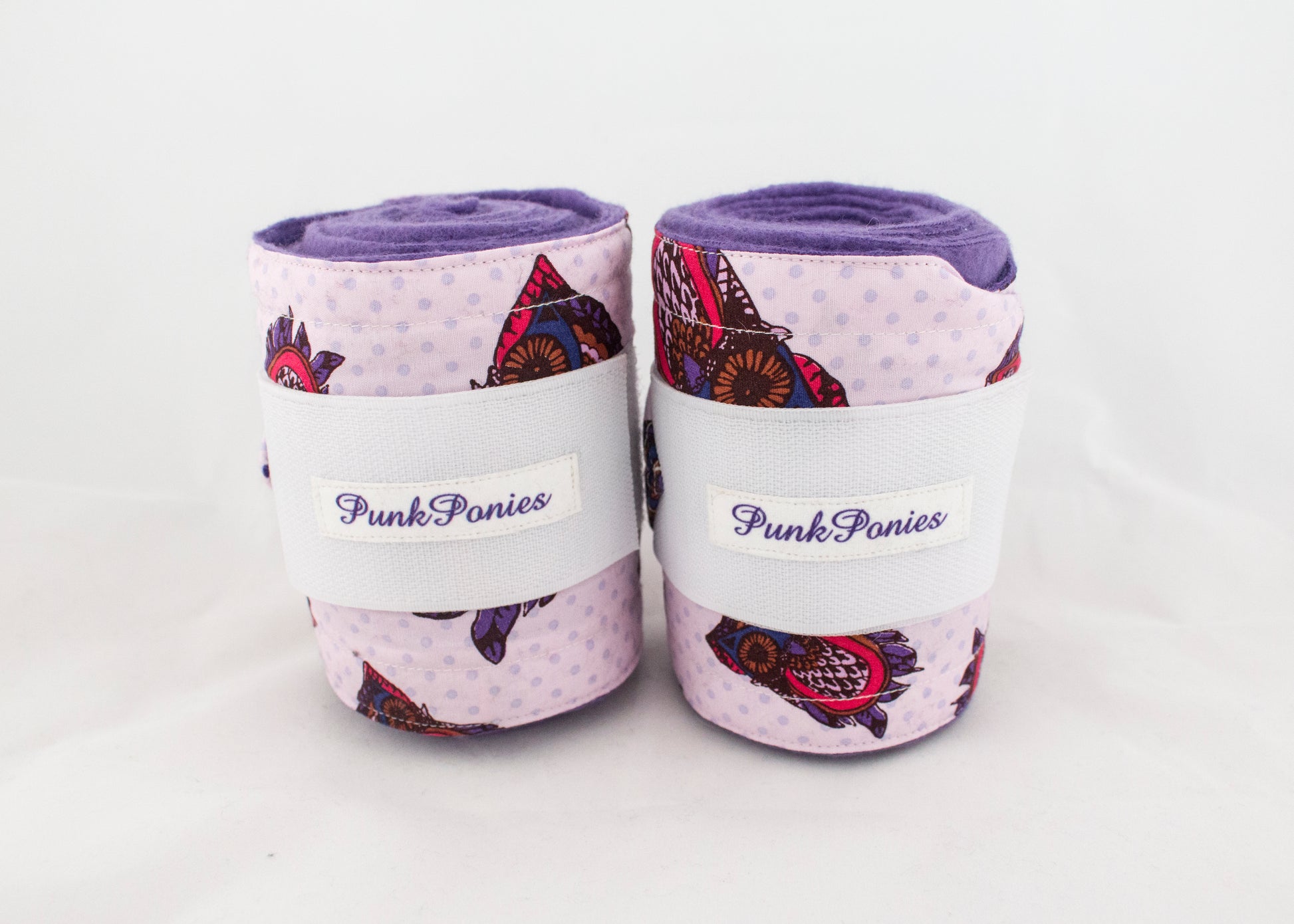 Handmade polo bandages made from high quality fleece and heavy duty velcro, with a strip of patterned cotton overlay. Sold in pairs. Custom polos available, please email us for a quote.
