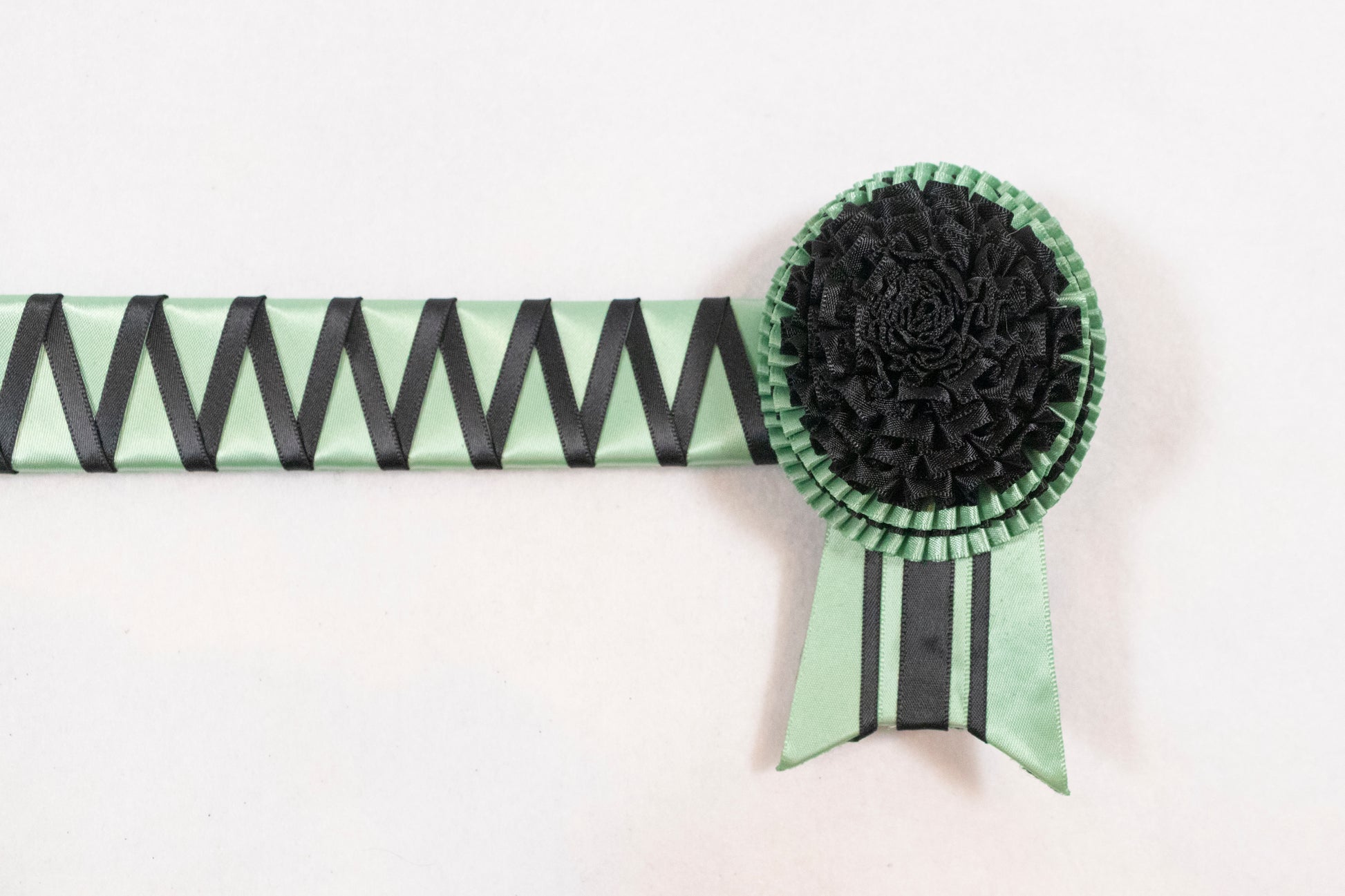 -Black and Sage Green satin rosettes