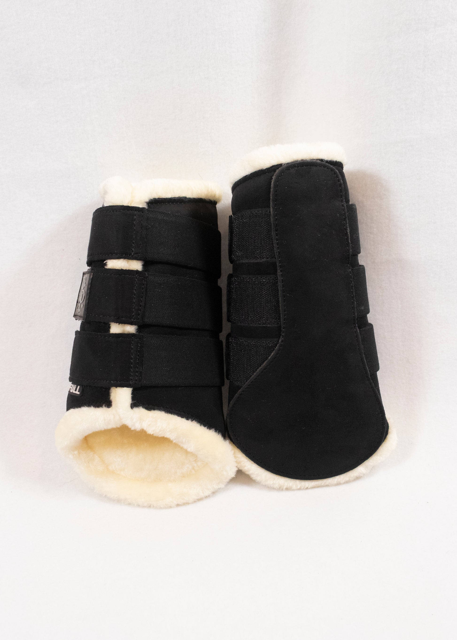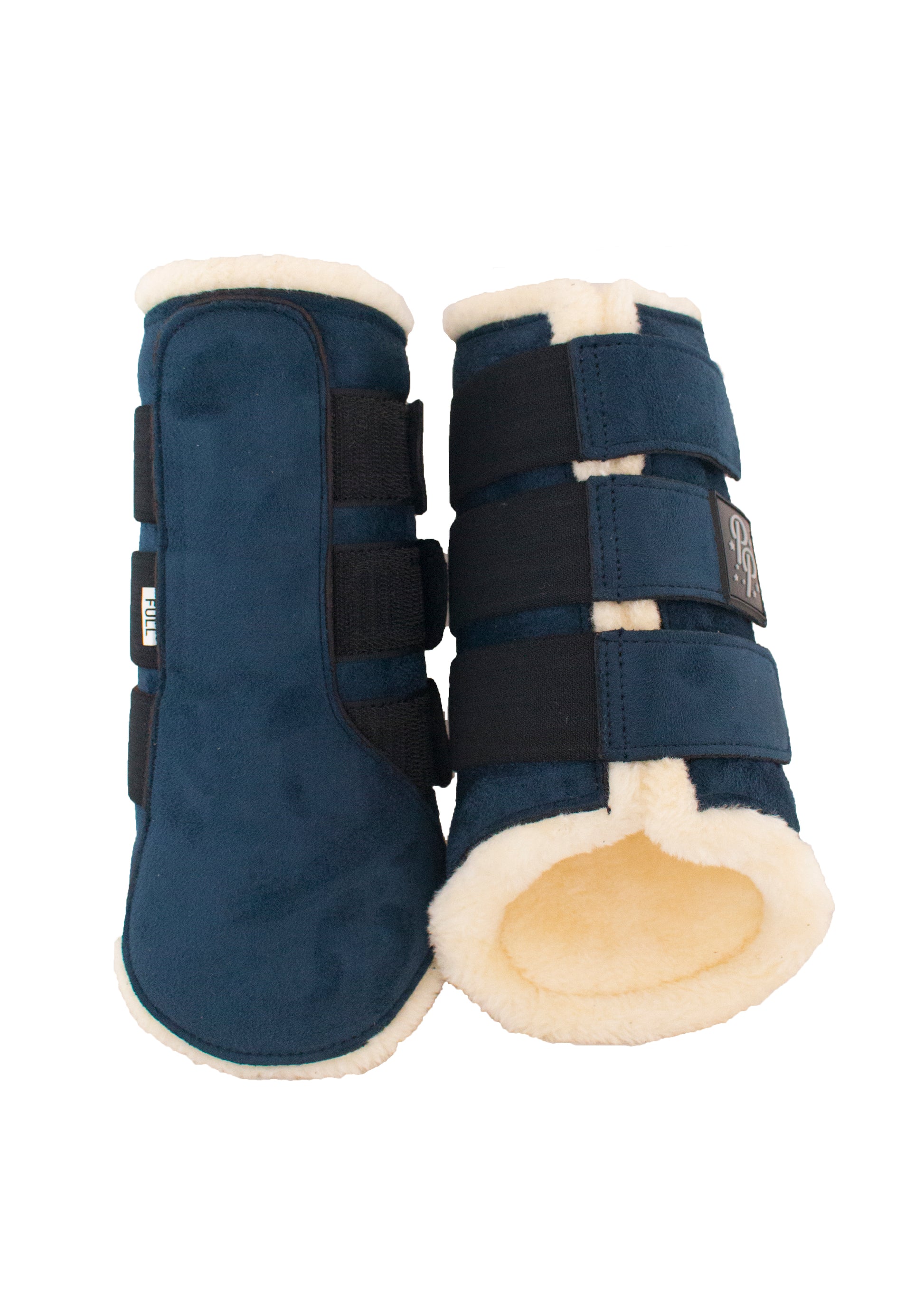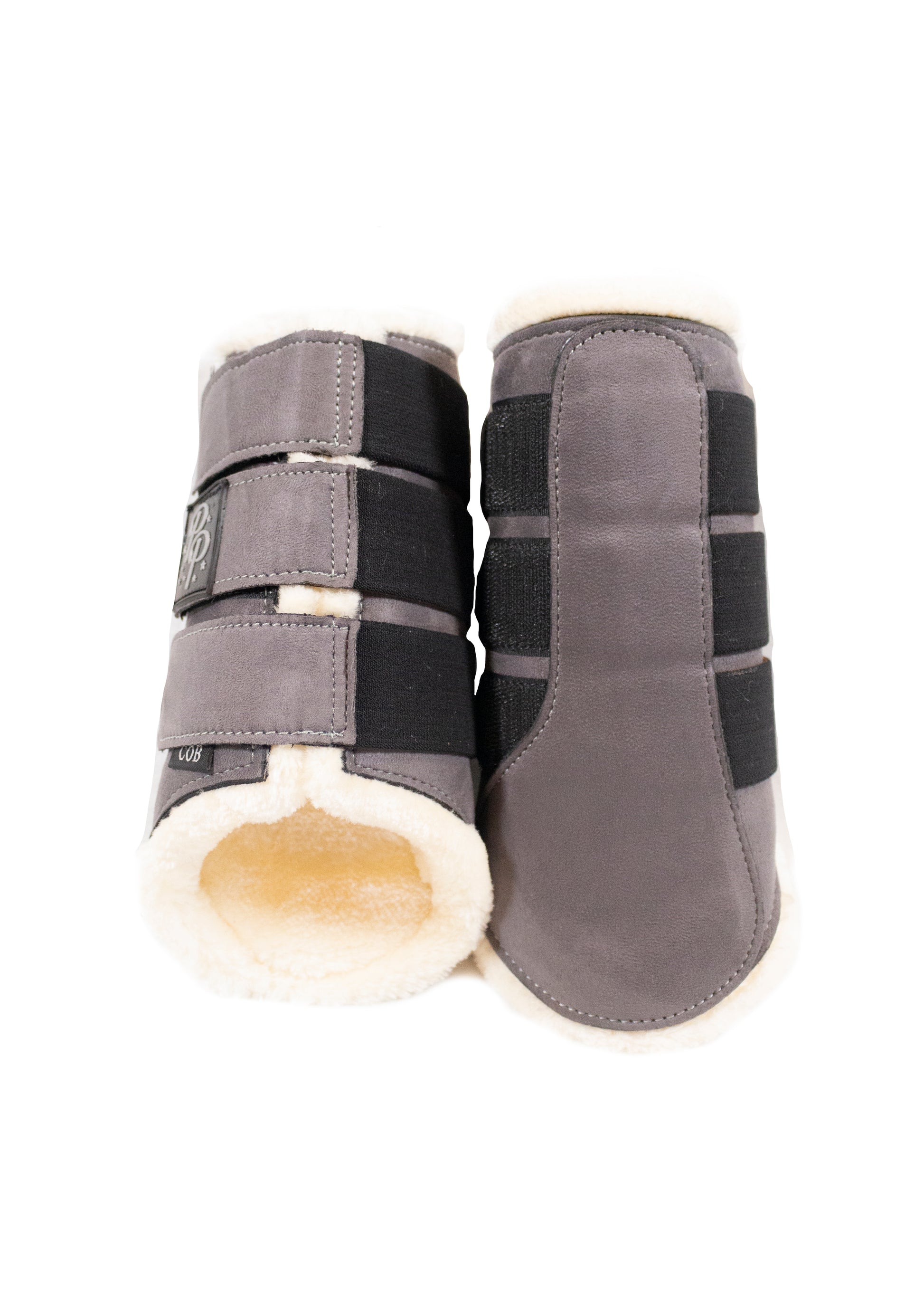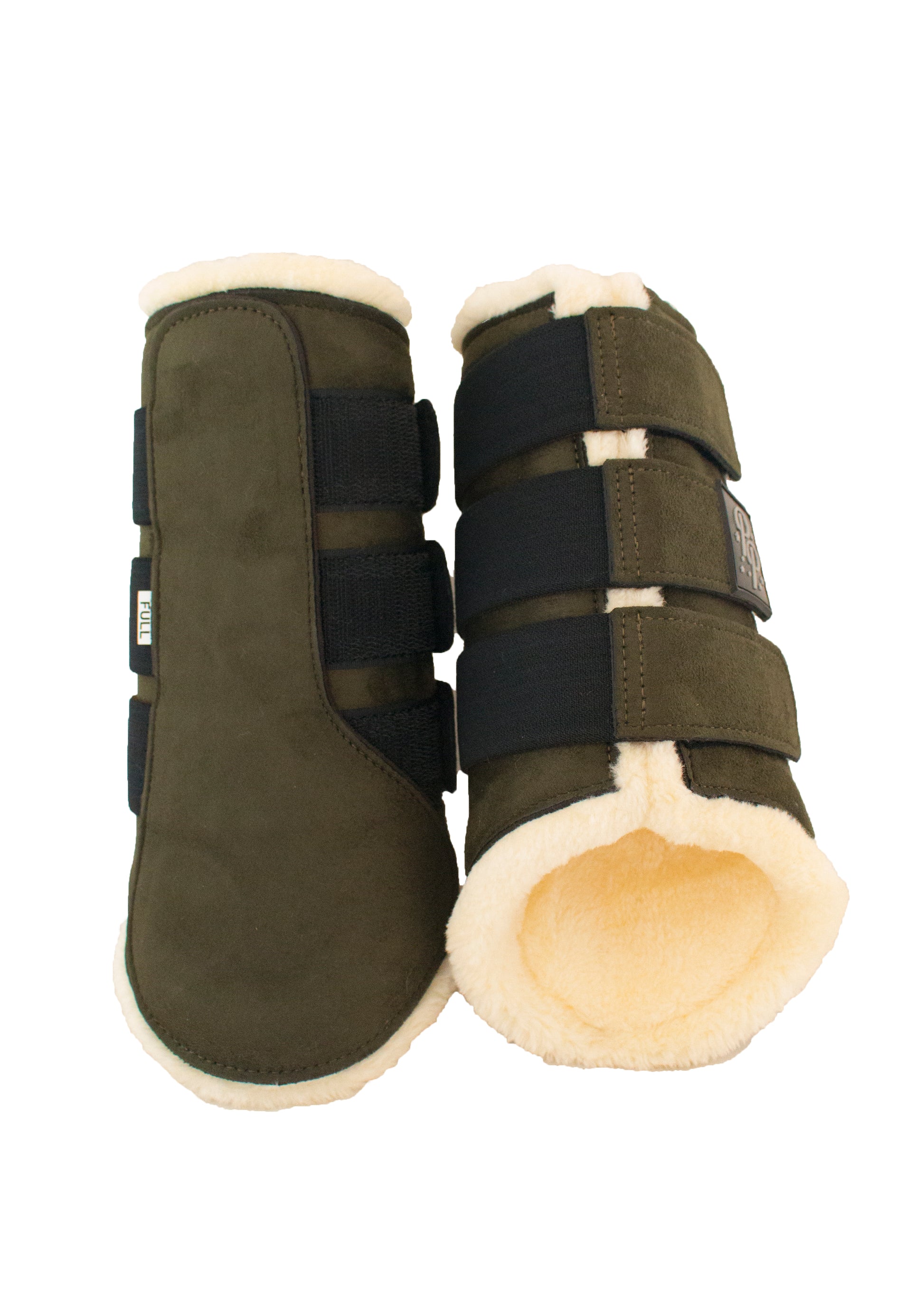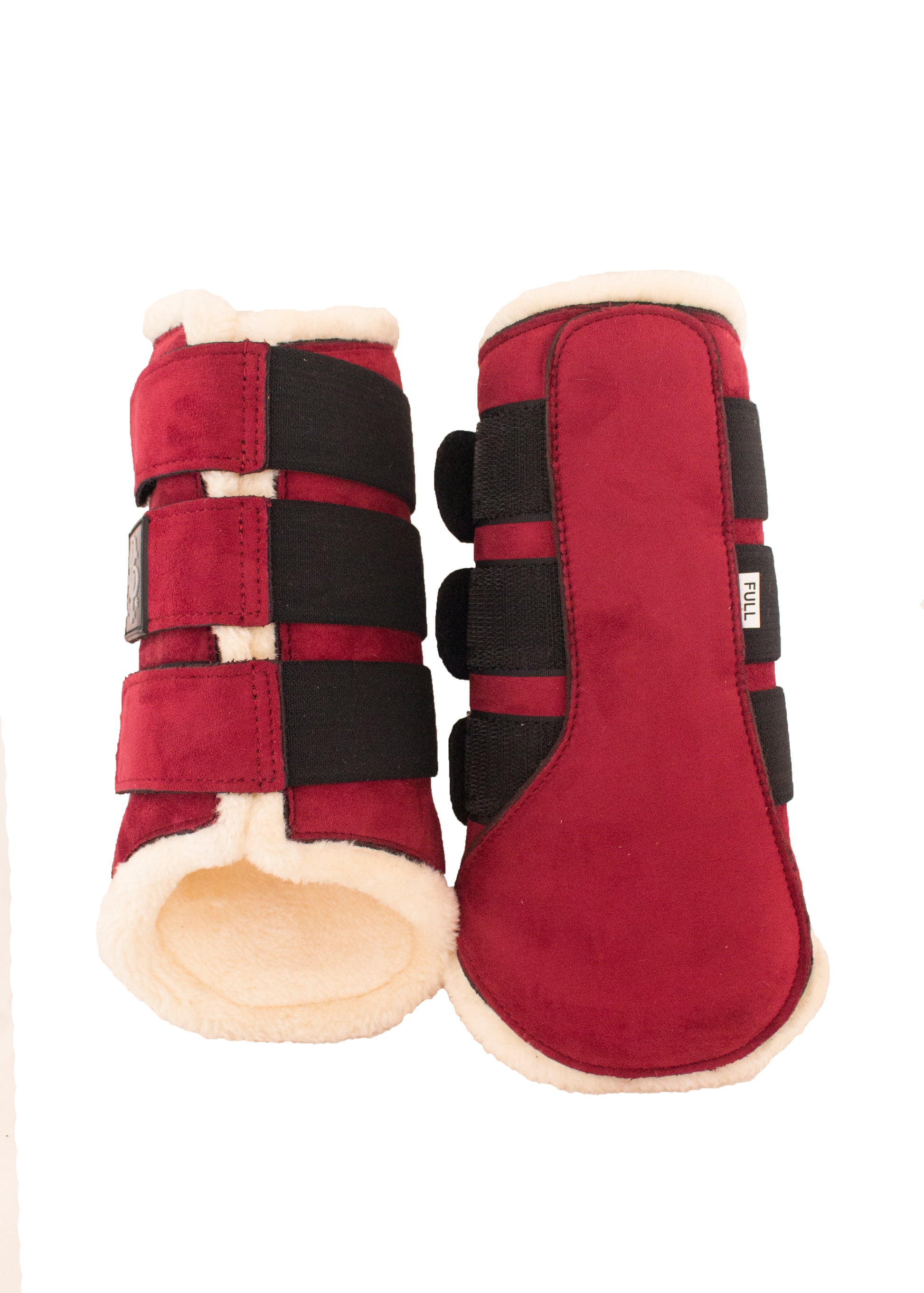 Faux sheepskin lined faux patent leather boots for protecting the horse's tendons and legs during riding and training. Suitable for schooling all english and western disciplines including jumping. These boots fit true to size based on front legs size. Sold in sets of two.