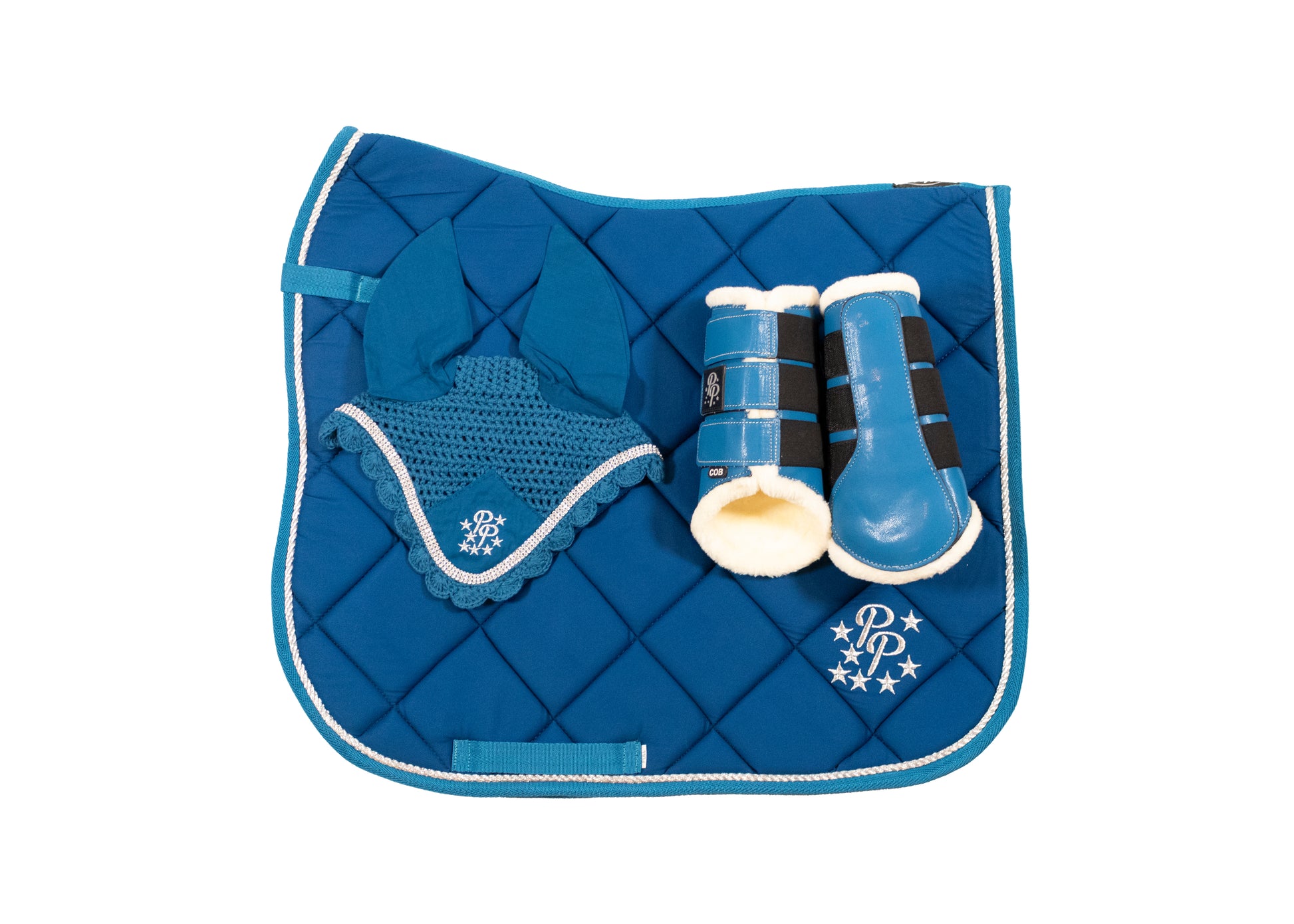 -Topaz/Turquoise Dressage saddle pad (pony size with pony set, full size with cob and full sets).